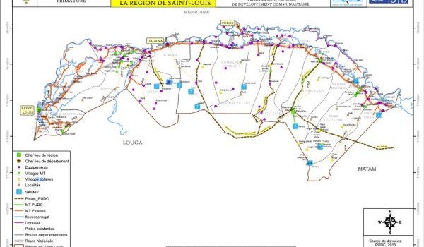 Vue d'ensemble des réalisations du PUDC dans la région de Saint-Louis, 2017.